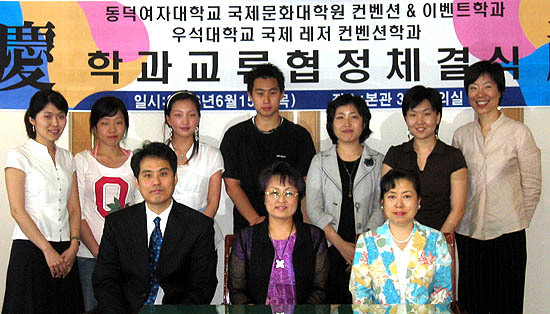 동덕여대 대학원 회의실에서 열린 이날 교류 협정식에는 우석대 여기태 국제레저컨벤션학과장과 서헌교수, 김미예 동덕여대 대학원 교무부장 등 양측 관계자 20여명이 참석했다.