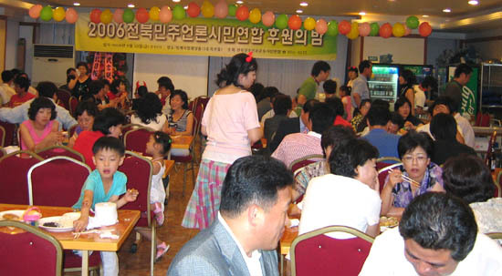 전북민주언론시민연합(공동대표 권혁남 장낙인· 이하 전북민언련)이 주최한 '2006 전북민언련 후원의 밤‘ 행사가 지난 23일 오후 6시부터 12시까지 전주 진북동 임페리얼웨딩홀(옛 전주MBC) 5층 목련홀에서 성황리에 열렸다.