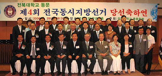 전북대 총동창회(회장 차종선)는 지난달 29일 오후 전주 코아호텔서 ‘전북대 동문 지방선거 당선 축하연’을 개최했다.