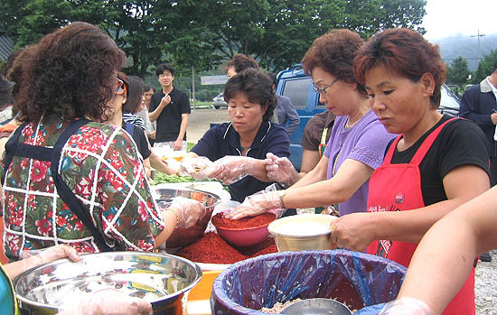 참여자들은 주민들의 안내로 좋은배추 고르는 법과 배추다듬기, 양념준비, 김치버무리기 등 김치담그기 전과정을 체험하고 손수담근 김치와 순두부로 점심을 나누며 우의를 다졌다.