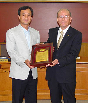 홍석주 전북은행장은 21일 오전 전북은행 본점에서 열린 경영혁신 전략회의에서 정부 기금을 전북은행에 유치한 한 의원의 공로를 치하고 감사패를 수여했다.
