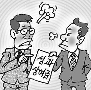 성과상여금은 미국이 원조다. 기업과 공공기관들이 목표관리제를 시행하면서 성취도에 따라 구성원들에게 돈을 차등지급한 것이 시발이다. 경쟁과 생산성 향상이 메리트였지만 평가기준의 객관성 때문에 불만을 샀다. 우리나라에선 대기업들이 70년대에 상여금을 지급했다. 하지만 성과에 따른 차등지급 형태는 아니었다. 어쨌든 회사원들에게 상여금 나오는 날은 부담없이 술 한잔 꺾는 날인데 지금은 그런 낭만도 없다. 그래도 월급쟁이들한테 상여금이란 말은 기분좋은 단어다.