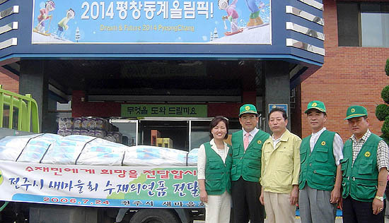 전주시 새마을회(회장 김상숙)는 24일 오후 2시 강원도 평창군청을 방문 막대한 재산·인적 피해를 입은 수재민들에게 쌀 250포(싯가 500만원 상당)를 전달했다.