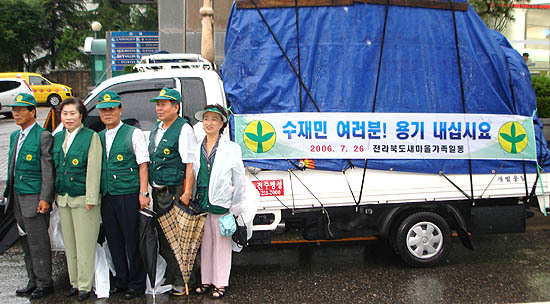 전라북도새마을회(회장 이영조)에서는 지난번 폭우피해로 고통을 받고 있는 강원도, 경기도, 경상남도, 전라북도 일원에 대해 생필품지원과 수해현장의 복구지원활동을 벌리고 있다.
