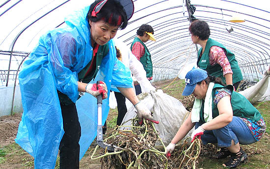 전주시내 주부로 구성된 농촌사랑봉사단 50명은 26일 경남 하동군 옥정지역을 찾아 군과 합동으로 하우스 철거 및 농작물퇴적물 제거, 비닐 수거 등 수해복구활동을 펼치는 한편 관내 어려운 농가의 비료나 농약 등 구입에 써 달라며 옥정농협에 성금 100만원을 전달했다.