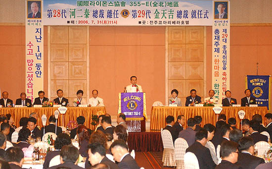 국제라이온스협회 355-E전북지구는 지난달 31일 오전 11시 전주시 풍남동 전주코아리베라호텔에서 제 29대 김천길 총재 취임식과 28대 하이태 직전총재의 이임식을 가졌다.