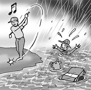 정치인들이 ‘수해골프’로 한바탕 홍역을 치렀다. 얼마전 강원도 수해현장 인근인 정선에서 한나라당 정치인들이 굿샷을 외치며 골프를 즐기다 된서리를 맞았다. 며칠 뒤 이번엔 열린우리당 정치인들이 충주의 시그너스 골프장에서 수해에도 아랑곳하지 않고 골프회동을 주선했다가 구설에 올랐다. 그뿐인가. 지난해 4월엔 이해찬 총리가 강원도 대형 산불 때에, 7월엔 남부지역 집중호우때 제주도에서 골프를 쳐 눈총을 받았고 철도파업 첫날인 올 3.1절날 부산서 기업인들과 골프를 즐기다 결국 낙마했다. 김진표 경제부총리는 2004년 태풍 매미 피해중 제주도에서 한가롭게 골프휴가를 보내 비난을 샀다.