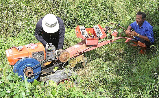 군 농업기술센터는 농업인의 경제적 부담을 덜어주기 위해 2만원이하 부품은 전액 무상수리해주고 있으며, 경운기에 반사경을 부착해주고 있다.