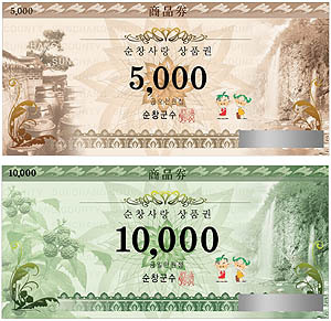 순창군 관할구역내에서만 유통되는 상품권은 5천원권과 1만원권 두종류이며 금년에 10억원 상당의 상품권을 발행하고 년차적으로 확대시행해 연 30억원 정도를 발행유통할 계획이다.