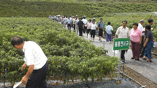 참석자들은 고추산업 발전을 위한 생산비 지원, 역병예방사업, 환경개선시범단지조성 등 고추산업 발전을 위한 시책추진사업을 설명듣고 품종별 고추 생육상황 및 건조품질을 비교평가해 우수품종 선발 및 내년도 고추산업 육성방안과 지원사업 추진 등에 관해 상호 토의하는 시간을 가졌다.