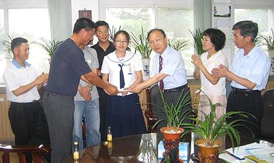한국철도공사 전북지사 은하수봉사단이 지난달 31일 원광여자중학교 1학년 허소영양에게 후원금을 전달하고 위로했다.