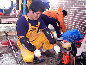 이날 야외에서는 한전 순창지점 직원들이 조를 나누어 인근 마을 등을 돌며 10여 채의 노후 전선을 교체했으며 다른 한쪽에서는 실생활에 필요한 가전제품과 예초기를 비롯한 오토바이 등 실생활에 필요한 기계들을 수리했다.