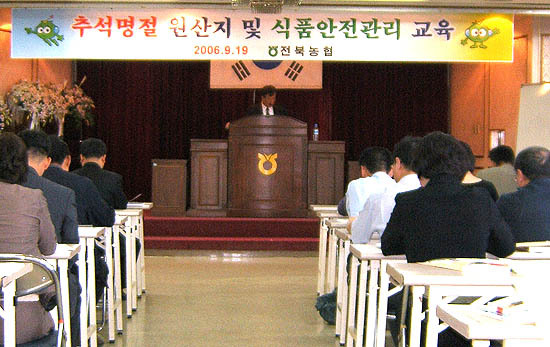 전북농협(본부장 이상준)은 추석명절을 앞두고 수입농산물과 농축산물의 불법유통 등 원산지 및 식품위생관리에 비상이 걸림에 따라 원산지 및 식품안전 교육을 19일 전주농협 회의실에서 도내 농협 경제사업장 관련 식품안전담당자 100여명이 참석한 가운데 실시했다.