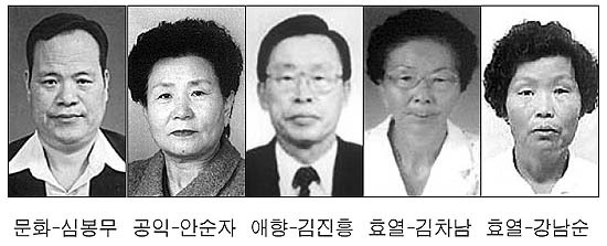 △효열장=강남순씨(62·덕치면)는 병든 시어머니를 봉양하면서 어버이날이면 이웃 노인들에 잔치상을 차려주는 등 타의 모범이 됨.