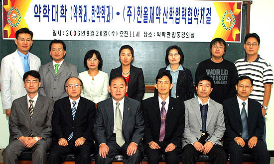 교내 약학관에서 열린 이날 협약식에는 양재헌 약학대학장과 학부 및 대학원생을 비롯, 조영관 (주)한올제약 연구소장 등 양측 관계자 200여명이 참석했다.