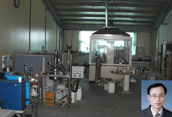 전주첨단벤처단지에 입주해 있는 티오켐(주)의 생산 시설. 티오켐은 금속이나 무기물 등을 나노단위로 분리해 각종 제품을 생산해내고 있다. 사진의 오른쪽 아래는 노창섭 대표. (desk@jjan.kr)