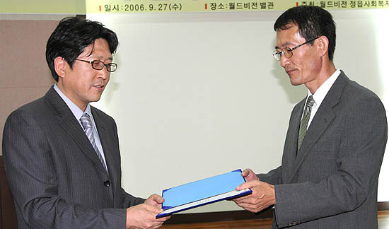 월드비전 전북지부(지부장 어호선)는 27일 한국환경자원공사 전북지사(지사장 김병석)와 소외된 이웃을 위한 복지사업을 공동으로 진행한다는 협약식을 가졌다.