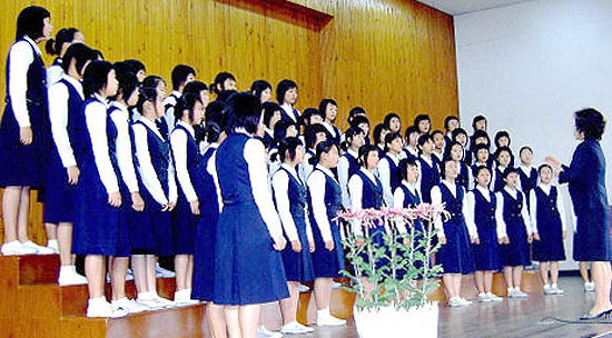 도내지역 9개 학교가 참가한 이번 대회에서 양지수양(3년) 등 60명으로 구성된 부안여중 합창단은 ‘산유화’‘새몽금포타령’ 등을 불러 최고상의 영예를 안았다. 사진은 지난달 29일 전주대학교 예술관에서 열린 경연대회에서 열창하고 있는 부안여중 합창단.