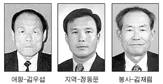 제1회 상전면민의 장에 △애향 김우섭씨 △지역발전 정동문씨 △사회봉사 김재림씨가 3일 면민의 날 행사에서 수상의 영예를 안게됐다.