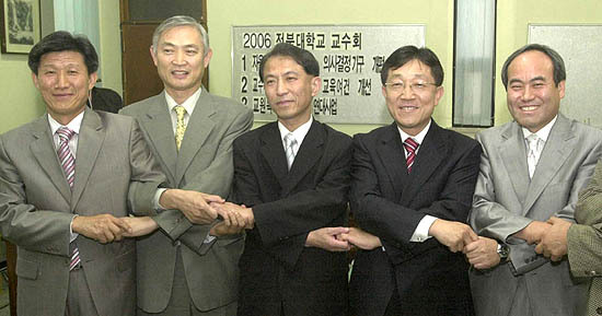오는 25일 실시되는 전북대 '제15대 총장후보자추천 재선거'에 모두 5명의 후보가 출마했다. 왼쪽부터한병성(전자·정보공학부)·고재기(의학전문대학원)·김관우(유럽어문학부)·신형식(환경·화학공학부)·서거석 교수(법학과) (후보 기호순).../이강민기자 (desk@jjan.kr)