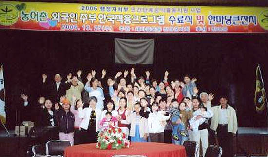 새마을운동진안군지회(지회장 임경환)는 25일 오전 10시 진안 문화의 집에서 윤철 부군수와 김정흠 군의장, 김대섭 도의원 등 120여명이 참석한 가운데 외국인주부 한국적응프로그램 수료식 및 한마당 큰 잔치 행사를 가졌다.