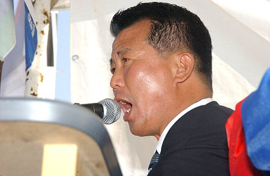 자칫 지루한 경기로 이어질 소싸움을 구성진 입담으로 즐겁게 만드는 장내 아나운서 강용기씨(50·경남 김해)가 그 주인공이다.