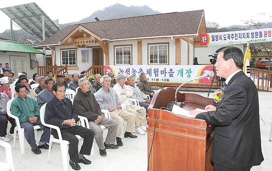 홍낙표 군수는 축사를 통해 “아름다운 자연과 문화유적이 조화로운 치목 녹색농촌체험마을은 농촌체험관광의 활기찬 미래를 열어 줄 것”이라며 “실질적인 농가소득과 부가가치를 높일 수 있도록 마련된 기반을 적극 활용해 잘 사는 무주 행복한 군민 실현을 앞당기자”고 말했다.