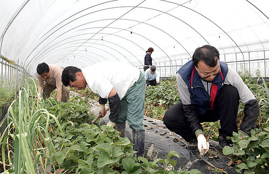지적공사 공민배 사장은 지난 17일, 30여명의 직원과 함께 자매결연을 맺은 순창군 금과면 대장마을을 찾아 딸기순 솎아주기, 폐비닐 수거 등 농촌일손돕기 활동을 펼친 뒤 대형냉장고 한대를 기증했다.