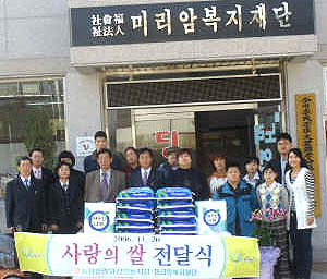 농협중앙회 전주 삼천동지점(지점장 유정용)은 20일 임실읍에 소재하는 미리암 복지재단을 방문, 직원들의 성금을 모아 마련한 쌀과 생활용품을 전달했다.