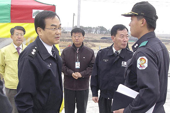 유근섭 전북경찰청장이 첫 공식일정으로 AI가 발생한 익산시 황등면 가축방역 검문통제소를 방문해 일선 근무자들을 격려했다.