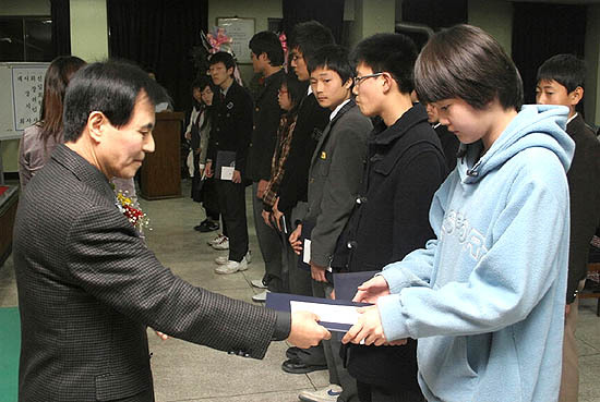 이날 장학금을 받은 김희원(평화중3년) 등 학업성적이 뛰어나고 학교생활에 충실한 모범청소년 20여명에게 각각 20만원씩 모두 400만원의 장학금이 전달됐다.