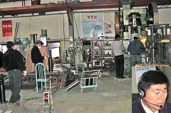 올해 100만달러 '수출의 탑'을 세우며 산자부장관 표창을 받은 한독엘리베이터 공장. 직원들이 제작에 여념이 없다, 권문기 사장(오른쪽 아래). (desk@jjan.kr)