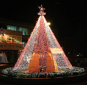 무주군은 군청 광장에 대형 크리스마스트리를 설치하고 7일 저녁 6시부터 홍성춘 부군수를 비롯한 무주군기독교협회 회장 심차보 목사 등 관내 교회 목회자와 각급 기관사회단체장, 그리고 공직자와 가족 등 3백 여 명이 참석한 가운데 점등식을 가졌다.