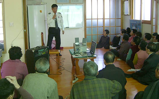이날 교육에서 교통지도계 김성우 계장은 교통사고를 당했던 피해 노인들의 동영상을 소개하고, 야간보행방법 및 밝은색 복장착용 등 보행자가 지켜야 할 교통안전상식 등을 지도하였다.