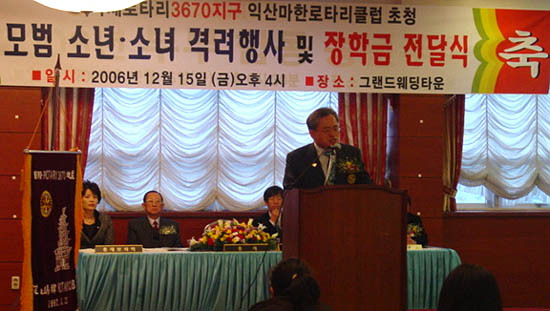 국제로타리3670지구 익산마한로타리클럽(회장 이장구)은 15일 오후 갈산동 그랜드웨딩타운에서 익산지역 초·중·고·대학생 160여명을 초청, 장학금 및 위문품을 전달했다.