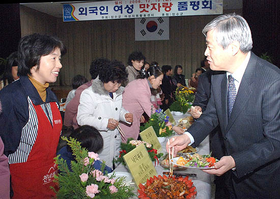 장수군은 지난 19일 장수군민회관에서 장재영 장수군수를 비롯해 김홍기 군의회의장, 여성자원봉사자, 외국인여성 및 가족 등 200여명이 참석한 가운데 외국인여성 및 가족과 함께하는 맛자랑 품평회를 개최했다.