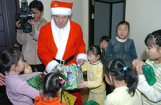성탄절을 사흘 앞둔 지난 22일 강광 정읍시장이 산타복장을 하고 아동복지시설인 시기동 애육원을 방문, 생활아동들에게 크리스마스 선물을 선사했다.