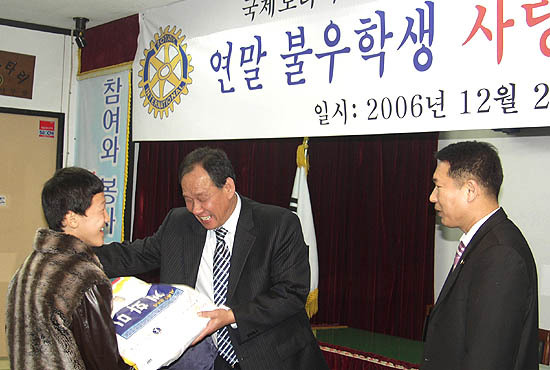 국제로타리 3670지구 전주완산로타리클럽은 연말연시를 맞아 지난 23일 클럽회의실에서 전주시내 생활이 어려운 초등학생 32명을 초대해 점심식사를 함께하고 20kg 들이 쌀 2포대 씩 모두 64포(256만원 상당)을 전달했다.