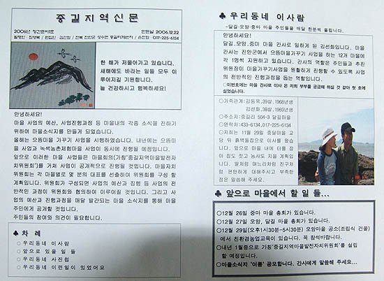 마을이장이자 발행인인 최영복씨(44)는 “아직은 창간단계에서 미흡한 점이 많지만 앞으로 마을주민 의견을 수렴하여 주민들을 위한 신문이 되도록 하겠다”며 의지를 밝혔다.