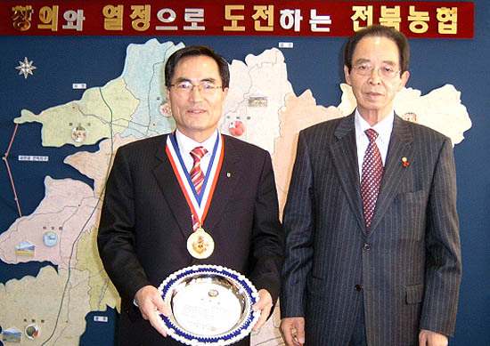 구랍 29일 이임식을 가진 이상준 전 전북농협 본부장이 전북애향운동본부(총재 임병찬)로부터 애향패를 받았다.