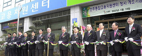 전주노동지청(지청장 박영호)은 지난 19일 오후 2시 전주시 진북동 전주종합고용지원센터 신청사 7층 회의실에서 김성중 노동부차관, 송하진 전주시장 등과 박 지청장 등 관계자 100여명이 참석개소식을 열었다.