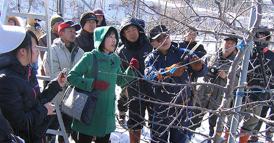 장수사과사업단이 겨울철 올바른 과원관리 및 수형관리를 위해 왜화재배선진기술자인 일본 아오모리현 나리타 츠카토시(成田束敏) 씨 등 전문가 4명을 초청, 25부터 이틀간 현장 순회교육에 나섰다.
