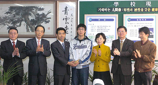 의송회 전주고 서울대진학 장학금전달-6일 전주고등학교 교장실에서 임병찬 전고 북중 총동창회 수석부회장및 의송회 회원은 서울대로 진학하는 안항길군에게 의송회 장학금 260만원을 전달하였다.