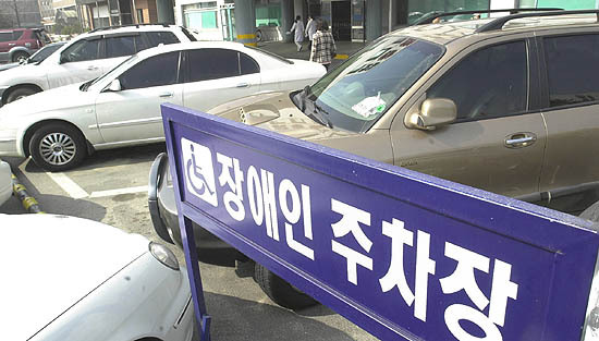 어디를 가나 사정은 거의 마찬가지다. 장애인주차장을 설치했지만 시설은 미비하고 관리에도 거의 관심이 없는 것이다. 인근에 있는 청원경찰 등도 별다른 제지를 하지 않는다.
