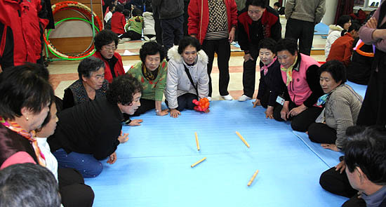 지난 16일 무주종합복지관이 마련한 '설날 민속놀이 대잔치' 참석자들이 윷놀이를 하고 있다. (desk@jjan.kr)