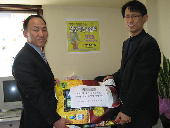 농협 인후동지점(지점장 백준기)은 20일 전주희망의 쉼터를 찾아 설명절을 외롭게 보낸 독거노인 및 소년소녀가장들에게 전달해달라며 사랑의 햅쌀 20㎏ 5포대 및 과일 등을 기탁했다.
