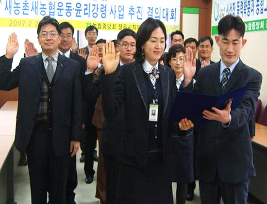 농협중앙회 정읍시지부(지부장 유영삼)는 27일 그동안 전사적으로 꾸준하게 추진해 왔던 ‘새 농촌 새 농협 운동’을 가속화시키고 금년을 재도약의 원년으로 만들기 위한 경영혁신 토론회와 실천 결의대회를 가졌다.