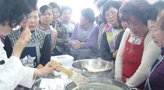 농산물 수입이 극을 이루는 상황에서 순수 국산콩을 이용, 다양한 웰빙음식을 선보인 이날 교육은 야채와 참깨를 넣은 영양두부가 인기를 끌었다.