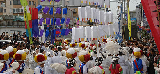 지난해 한국민속예술축제 대통령상을 수상한 '고창 오거리 당산제'가 19일 고창읍 중거리 당산거리와 동리국악당 앞 광장에서 열렸다.