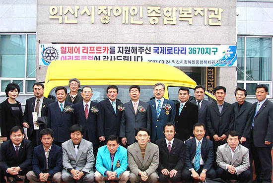 전달된 휠체어 리프트 차량은 이리동로타리클럽 회원들이 장애인과 함께 하는 따뜻한 사회만들기의 일환으로 이뤄져 의미를 더하고 있다.